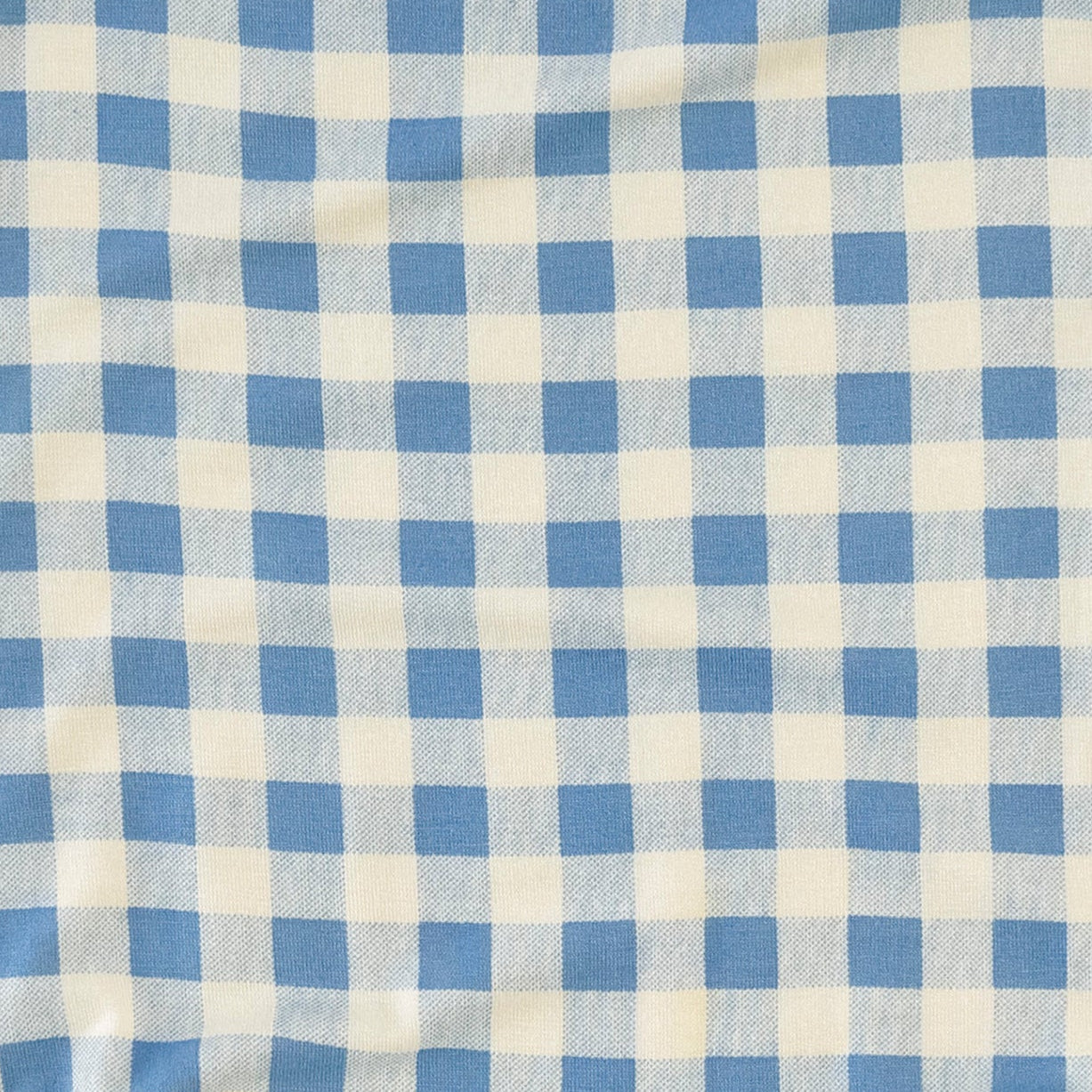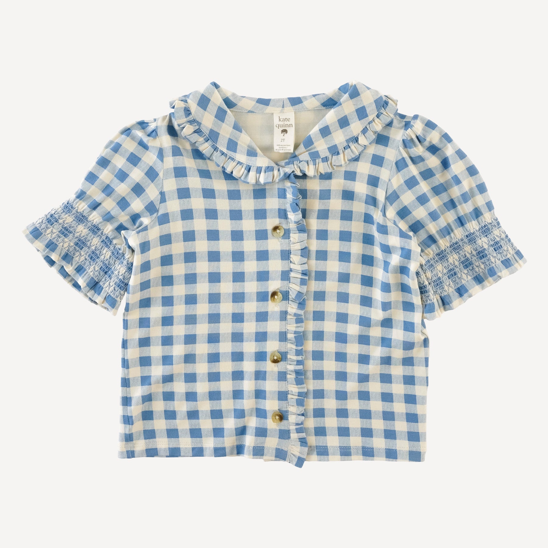 half sleeve ruffle shawl collar top | blue gingham | bamboo