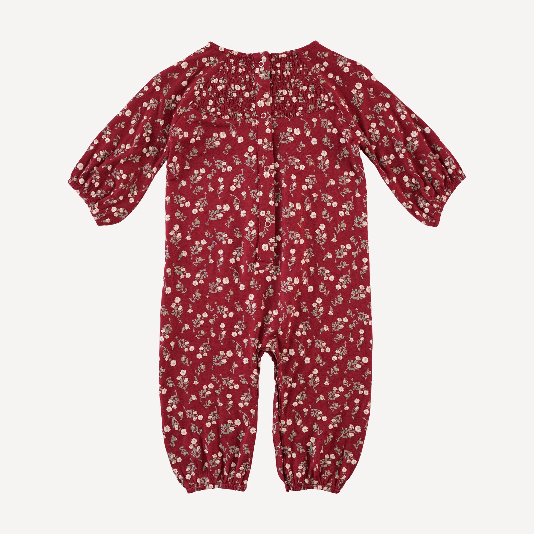 long sleeve puff smocked jumpsuit | garden tiny chamomile | bamboo