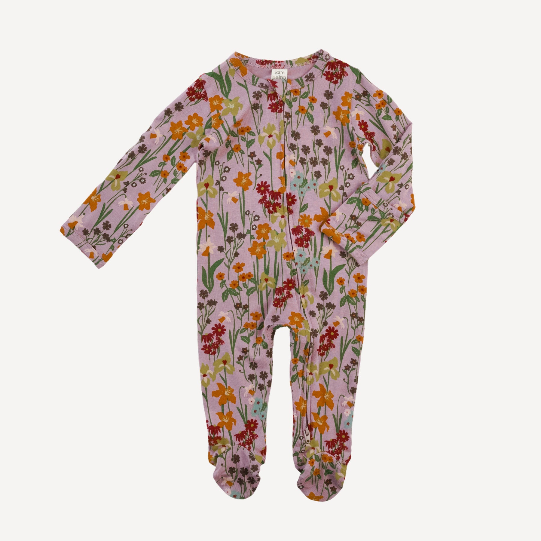 long sleeve two way zipper footie | mauve meadow | bamboo