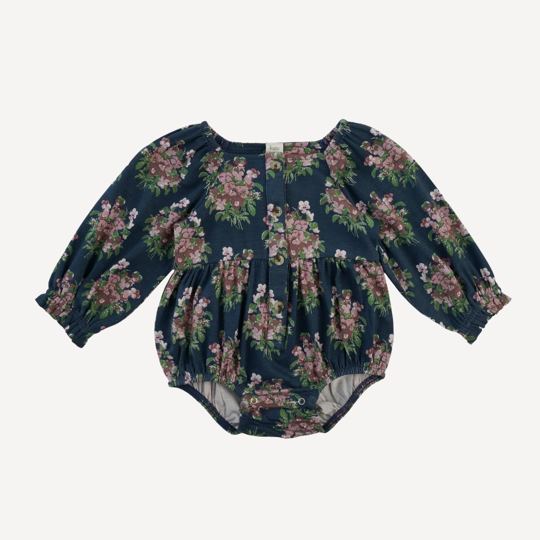 long sleeve woodland ruffle bubble | mauve pansy | bamboo