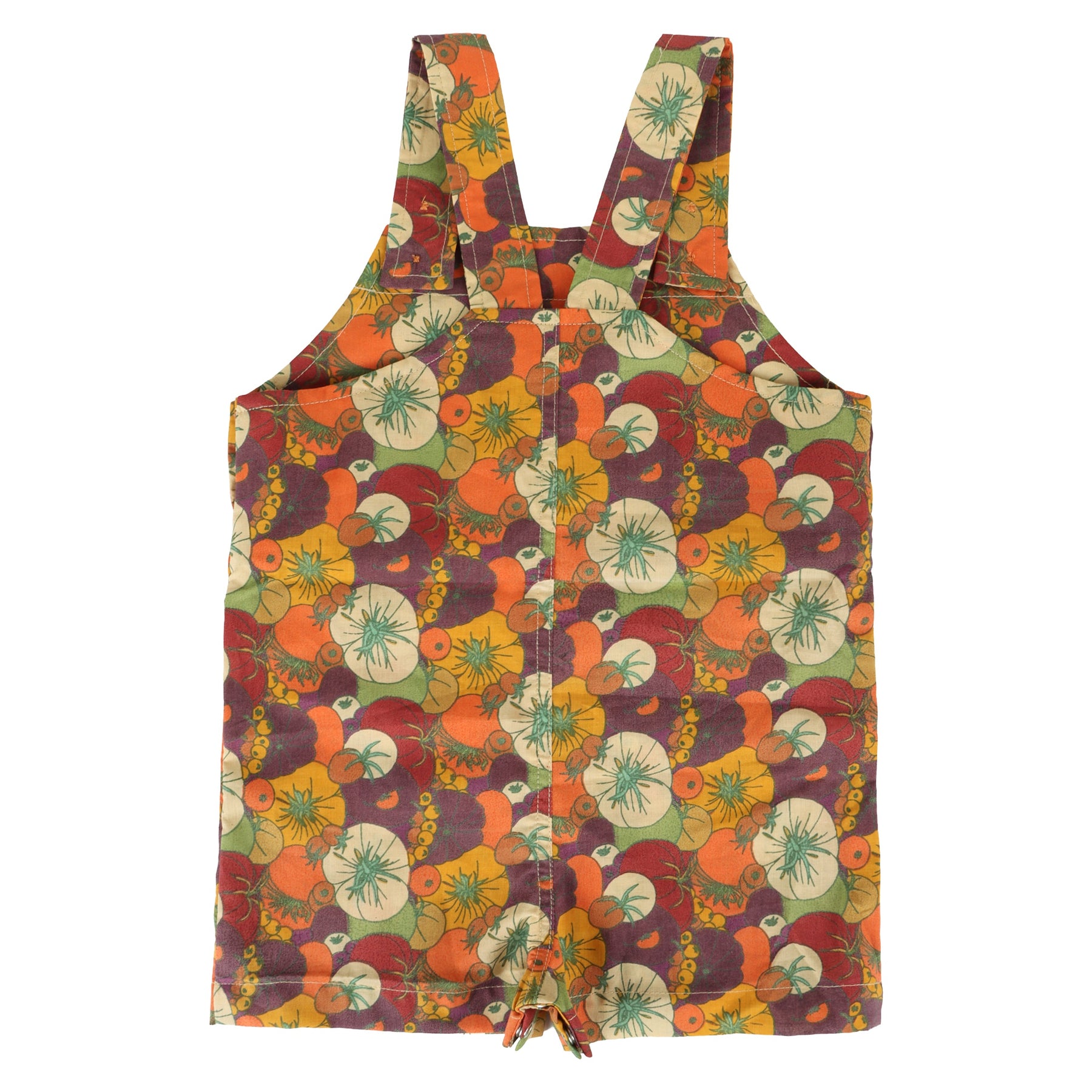 patch pocket overall shortie | heirloom tomatoes | organic cotton woven