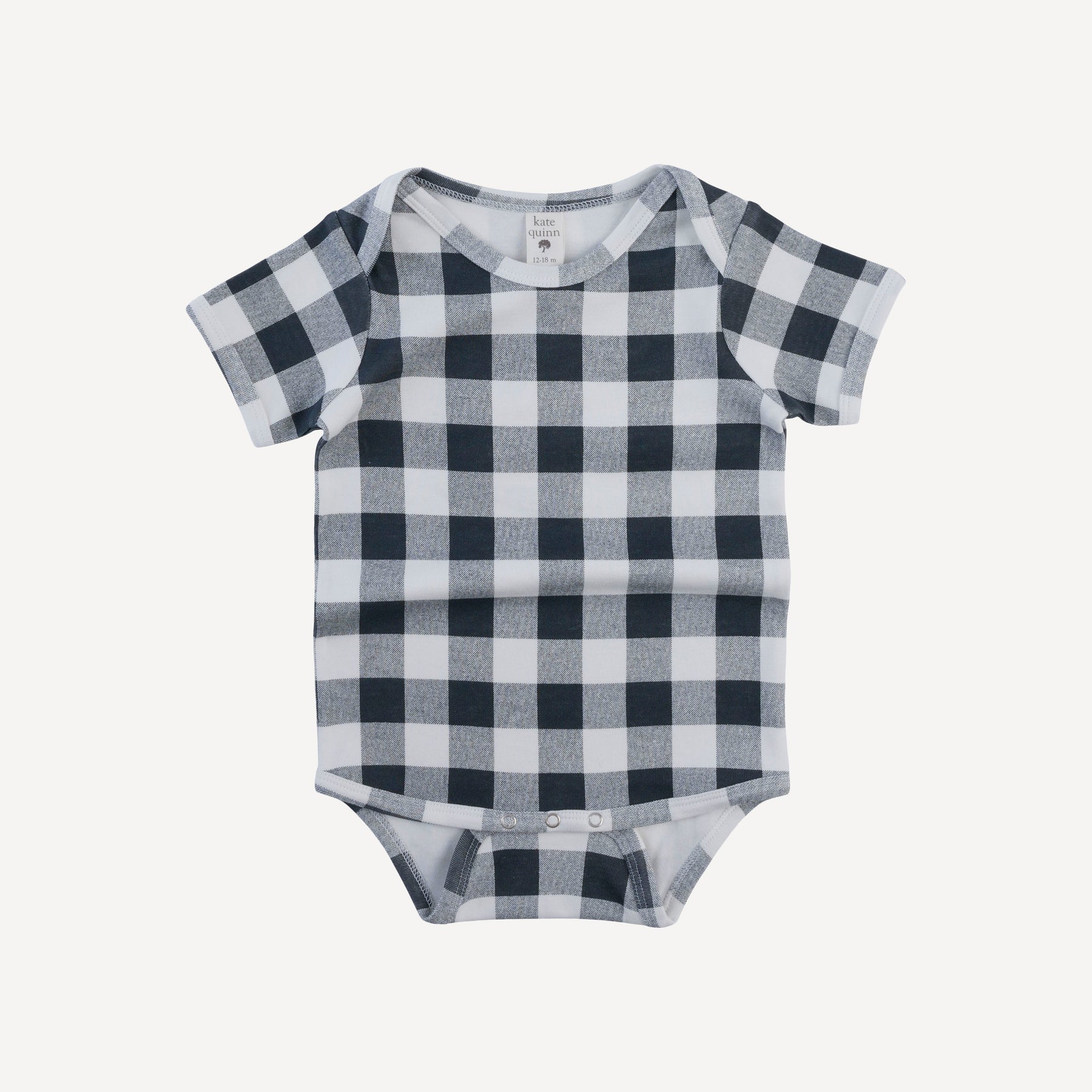 short sleeve lap neck bodysuit | blue gingham | organic cotton interlock