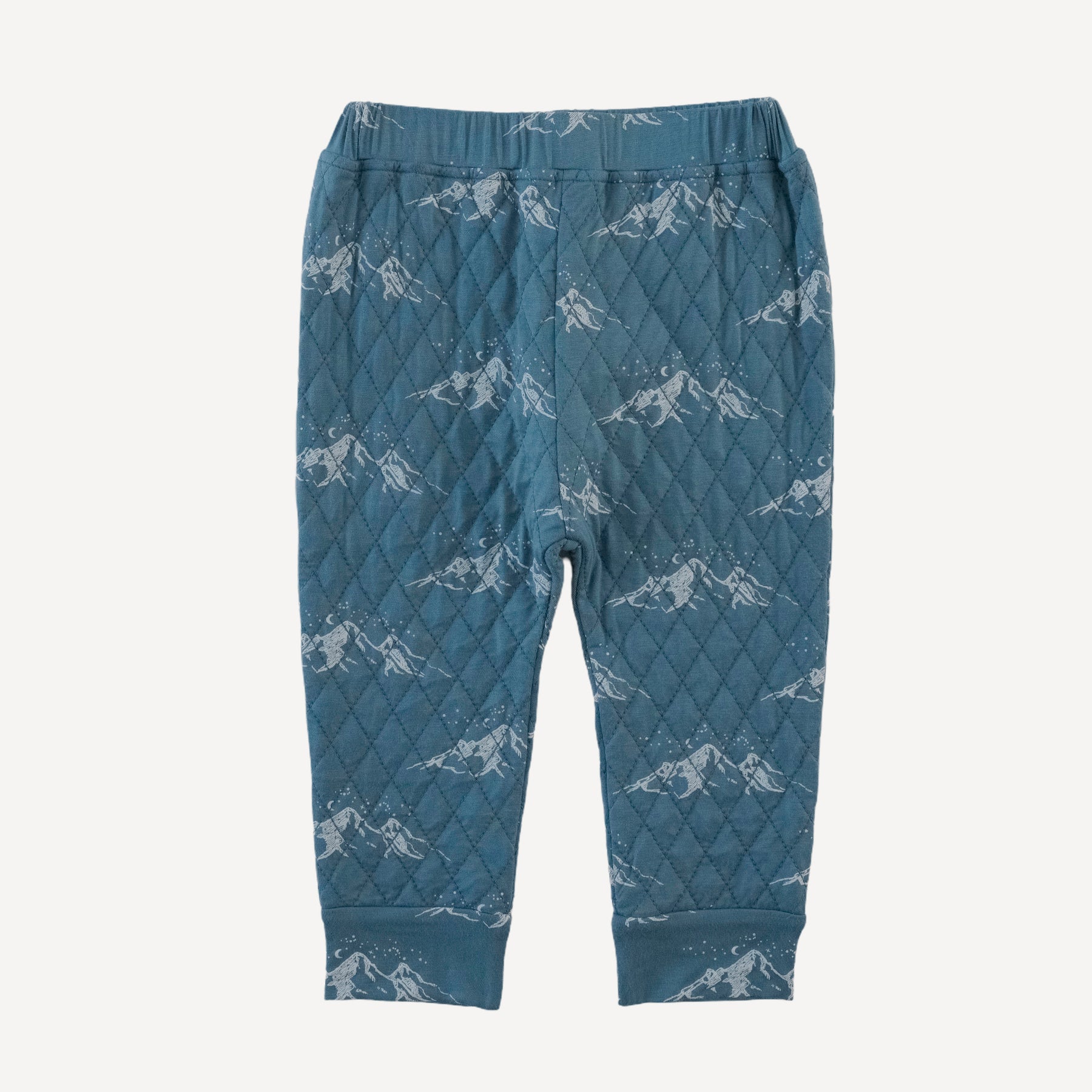 Features diamond quilted pattern, elastic waistband, and leg cuffs.