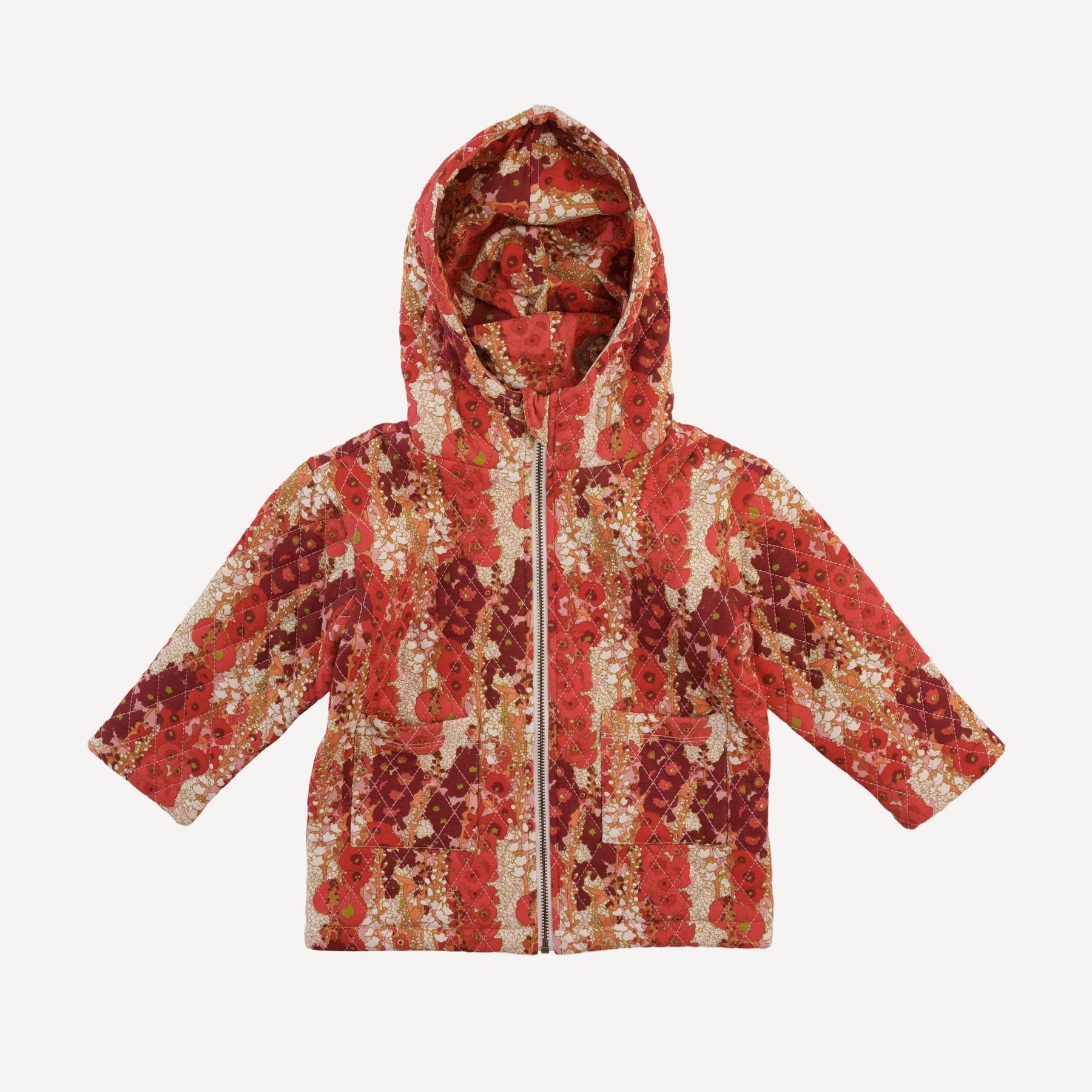 Features diamond quilted pattern, lined hood, front zipper closure with chin guard, and front pockets.
