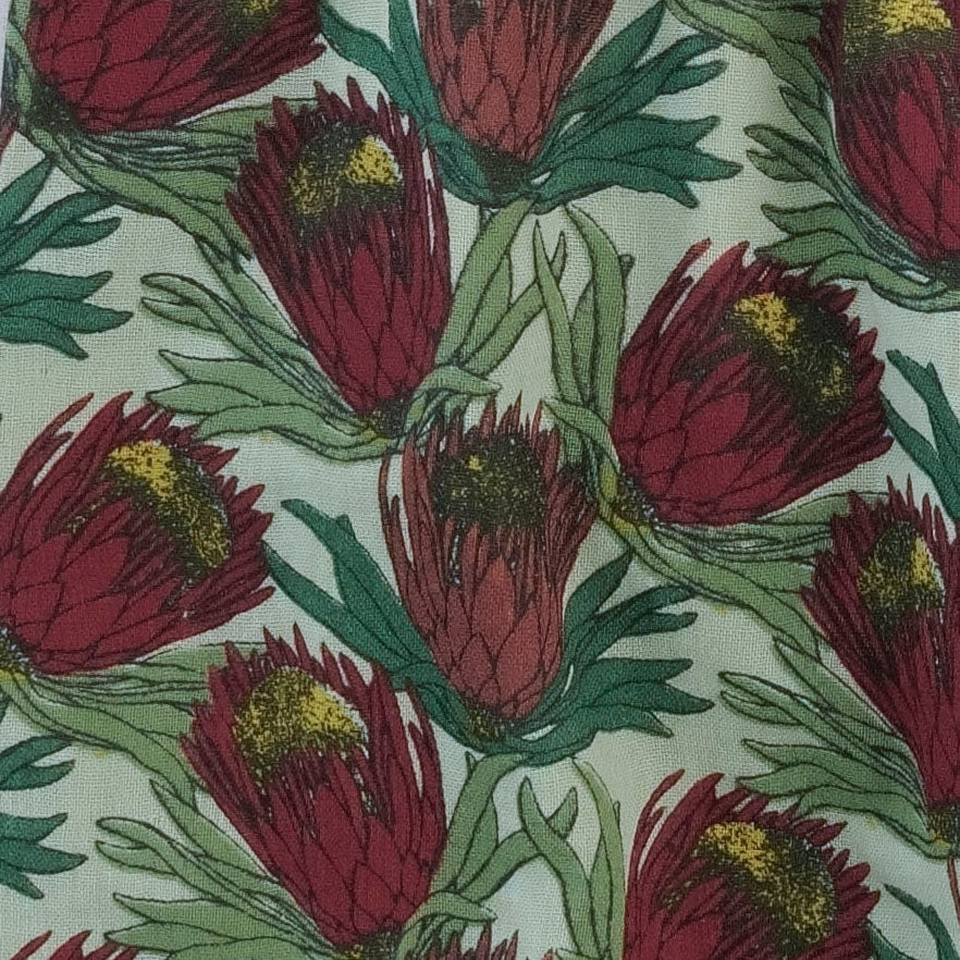 short puff sleeve prairie dress | large proteas | organic cotton gauze