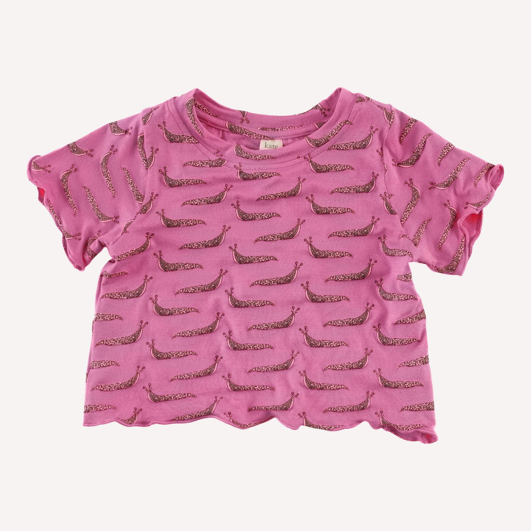 Features a cropped top with lettuce hem paired with matching cropped gaucho pants with elastic waistband, gathered details, and lettuce hem.