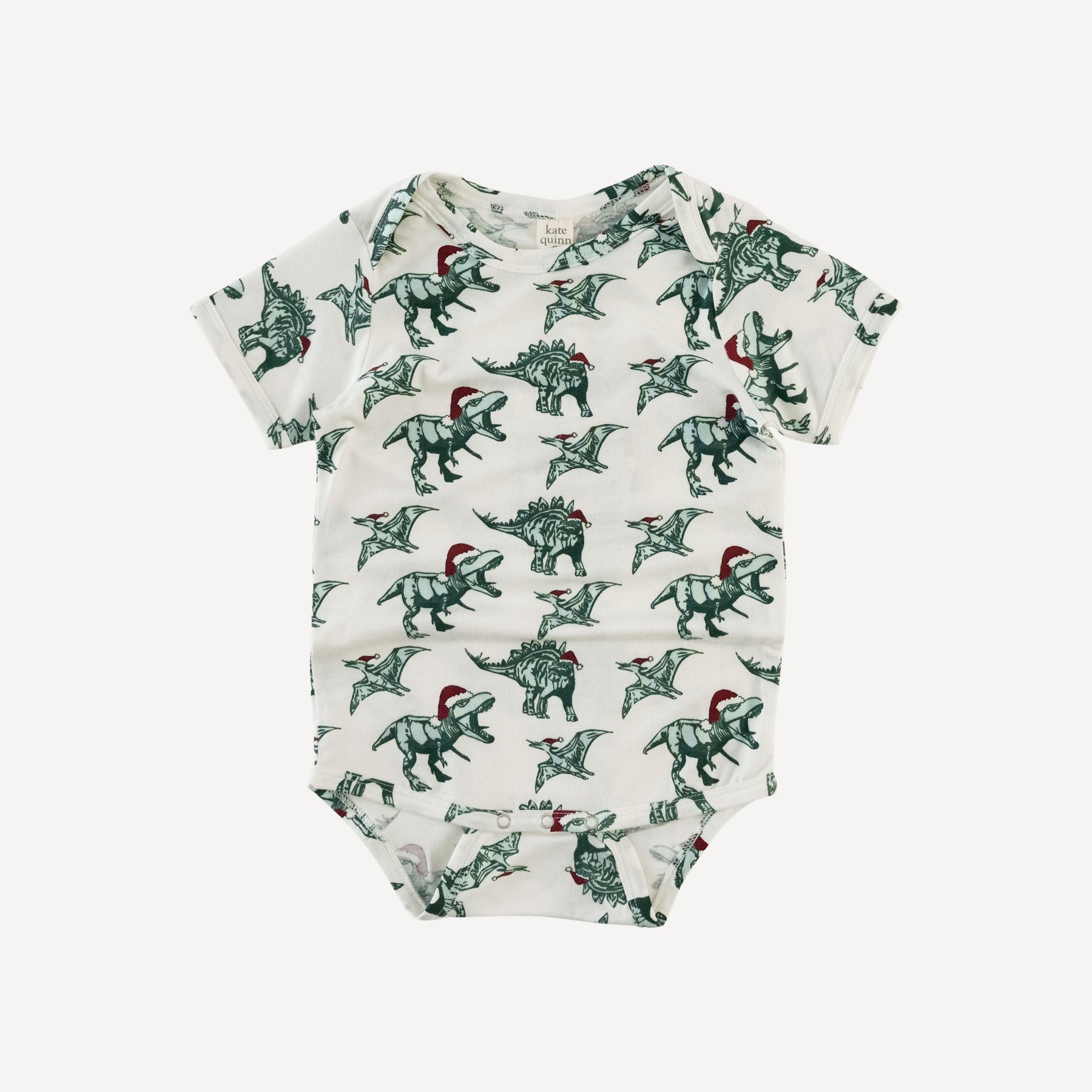 short sleeve lap neck bodysuit | santa dino | bamboo