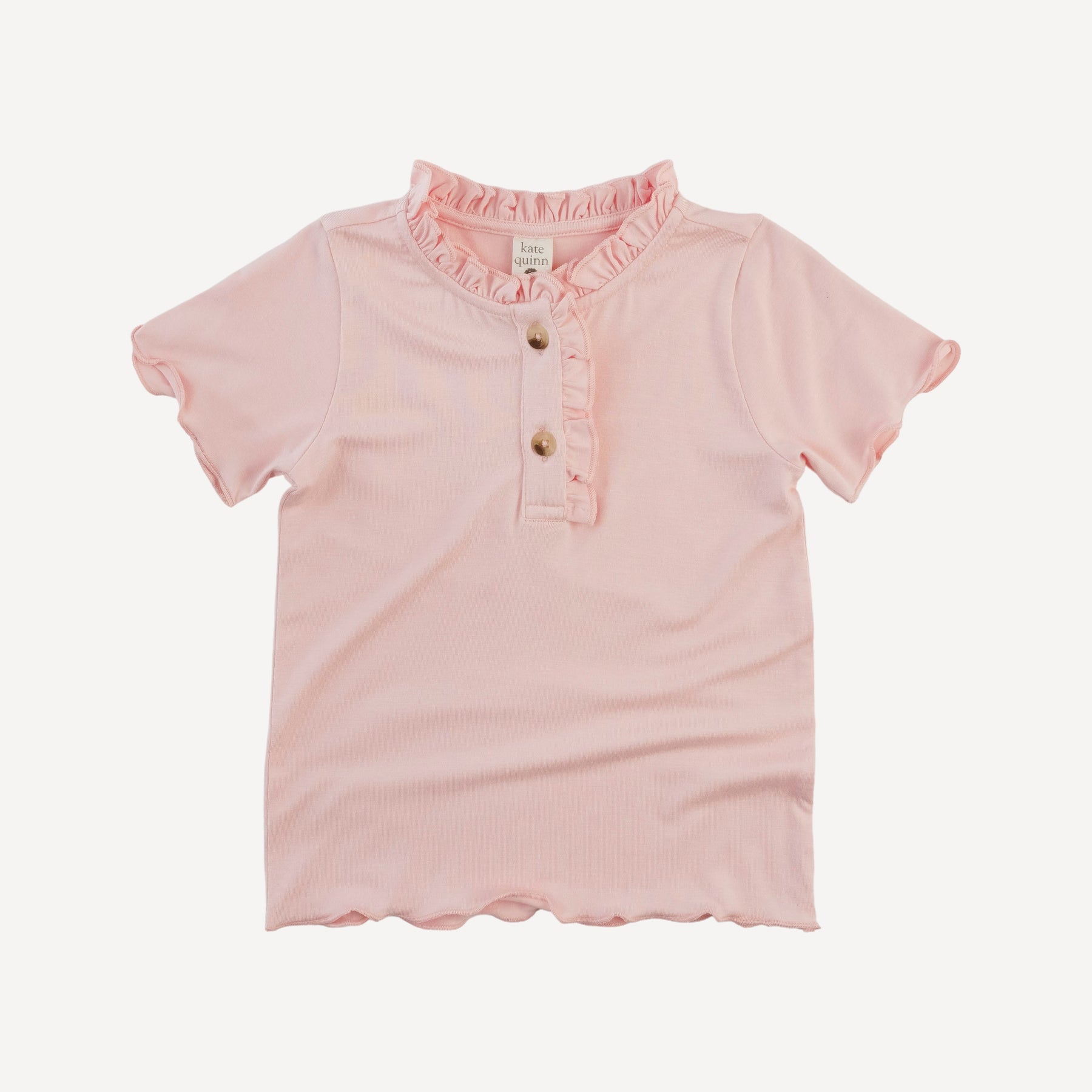 short sleeve ruffle henley tee | pink dogwood | bamboo