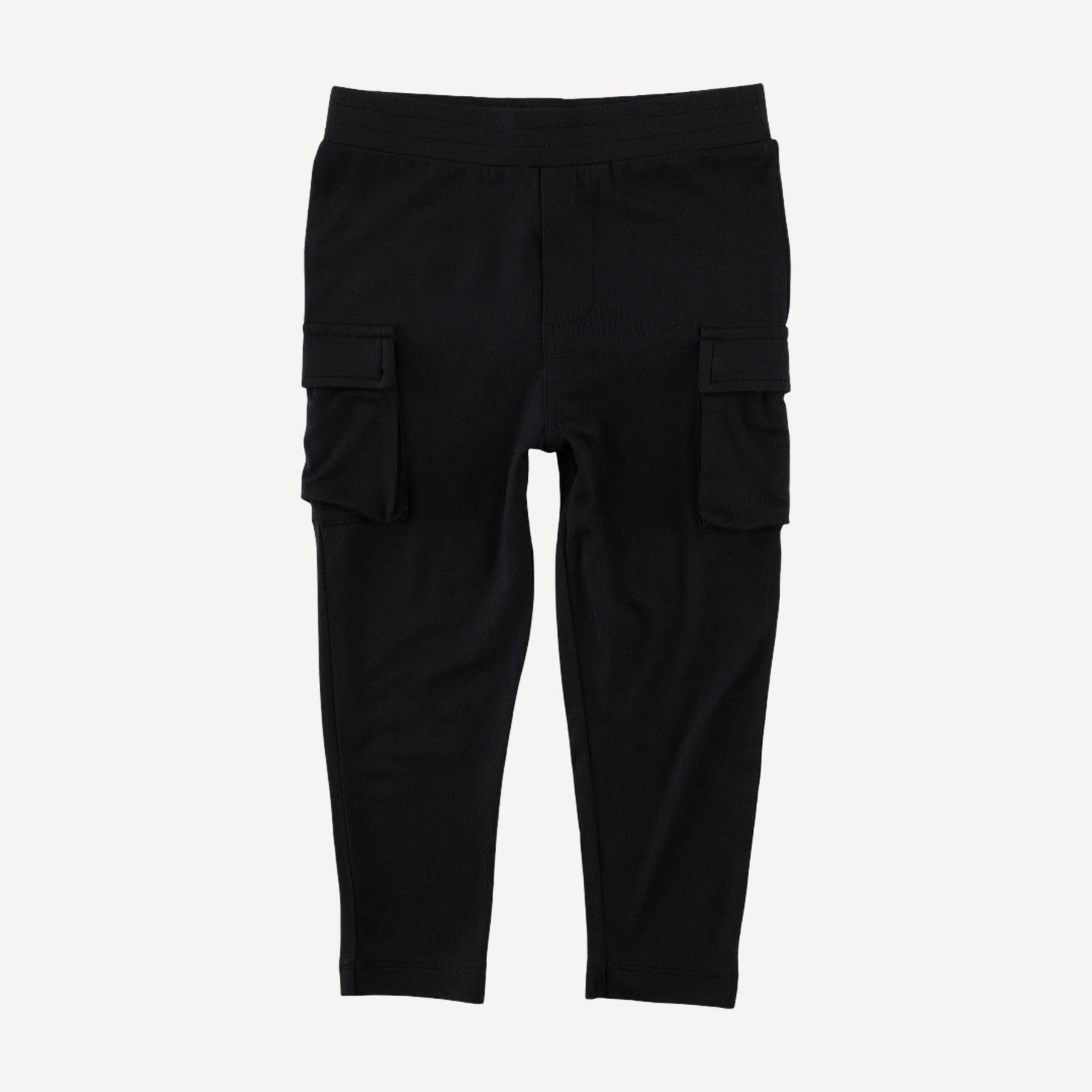 Features elastic waistband, side cargo pockets, and skinny fit.