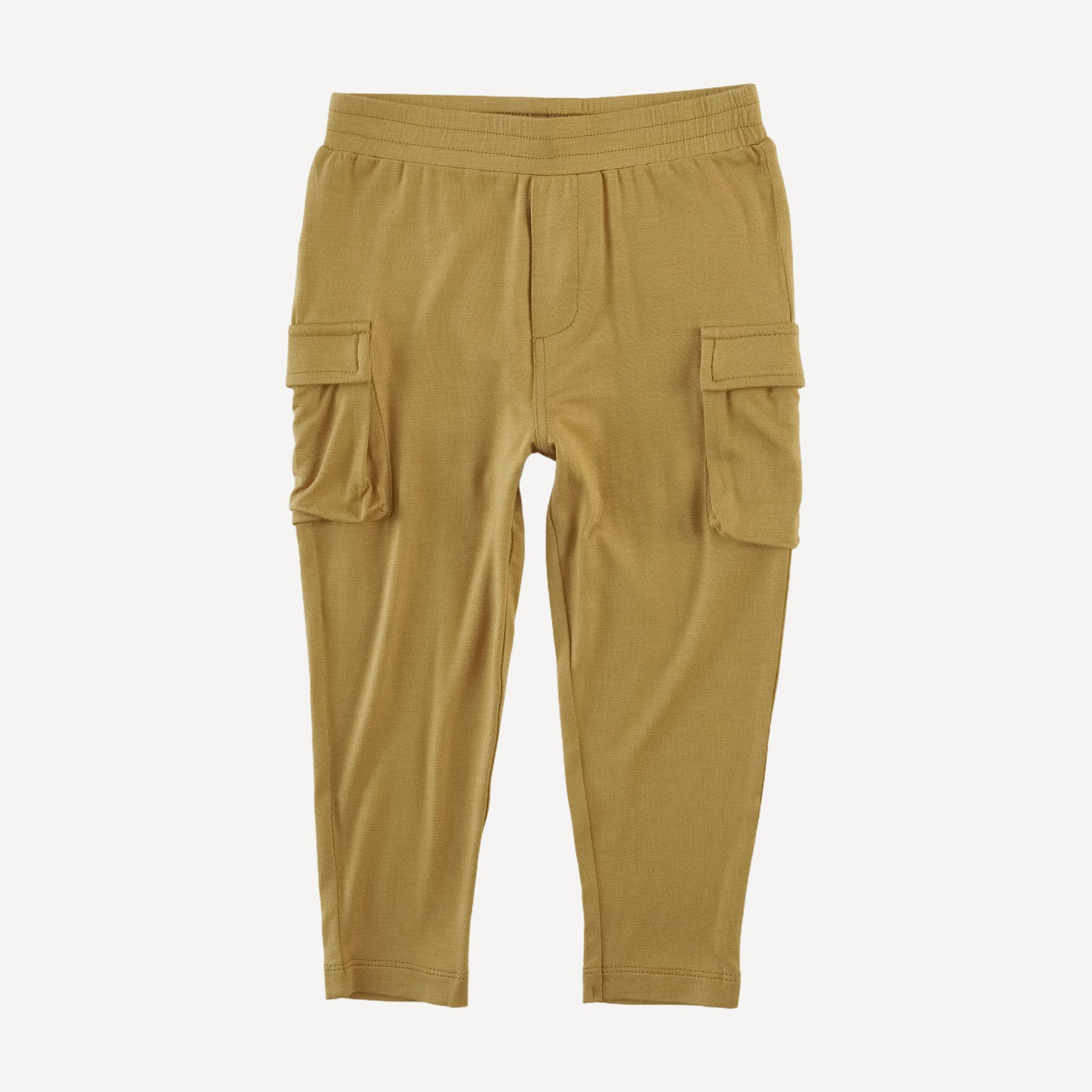 Features elastic waistband, side cargo pockets, and skinny fit.