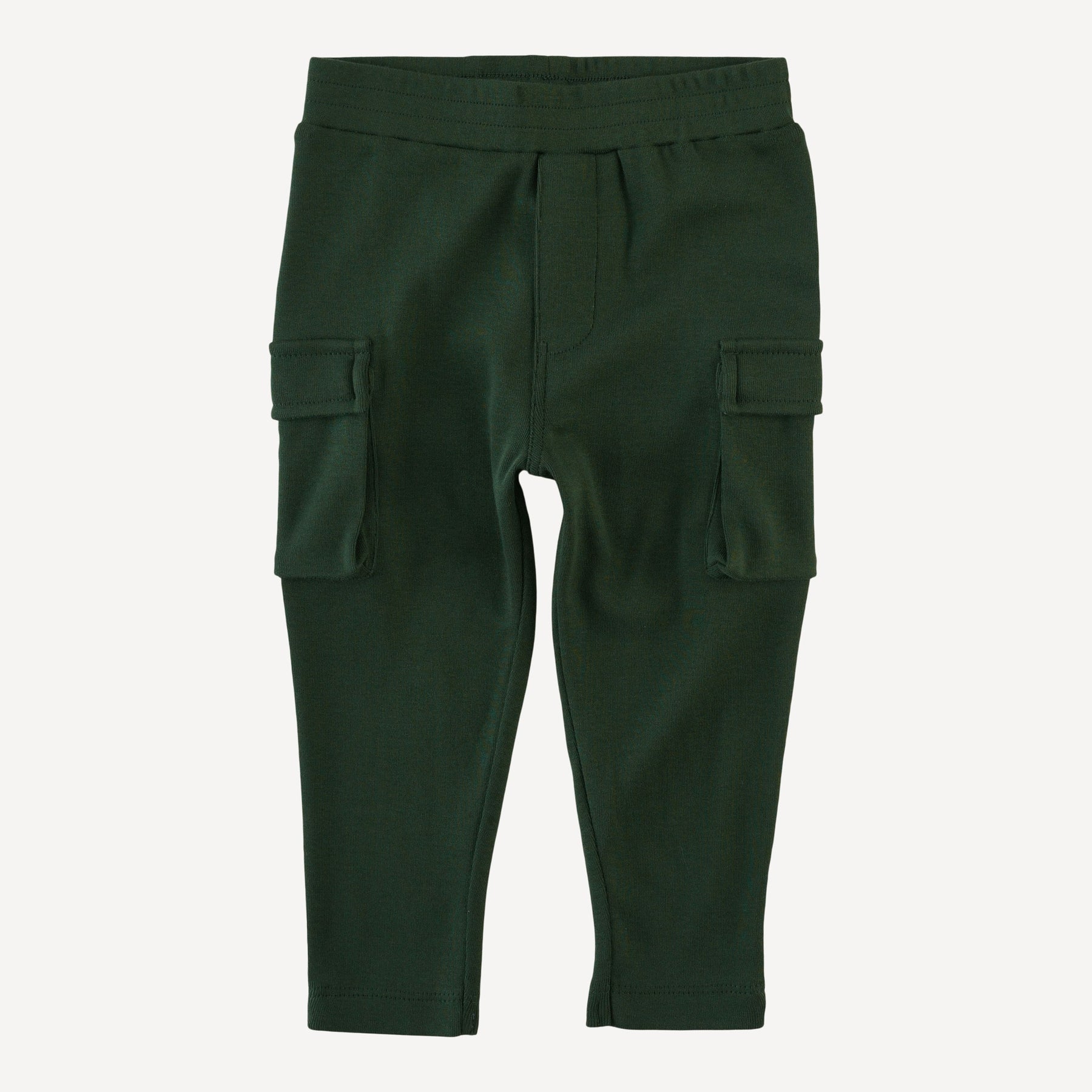 Features elastic waistband, faux fly detail, side cargo pockets, and skinny fit.