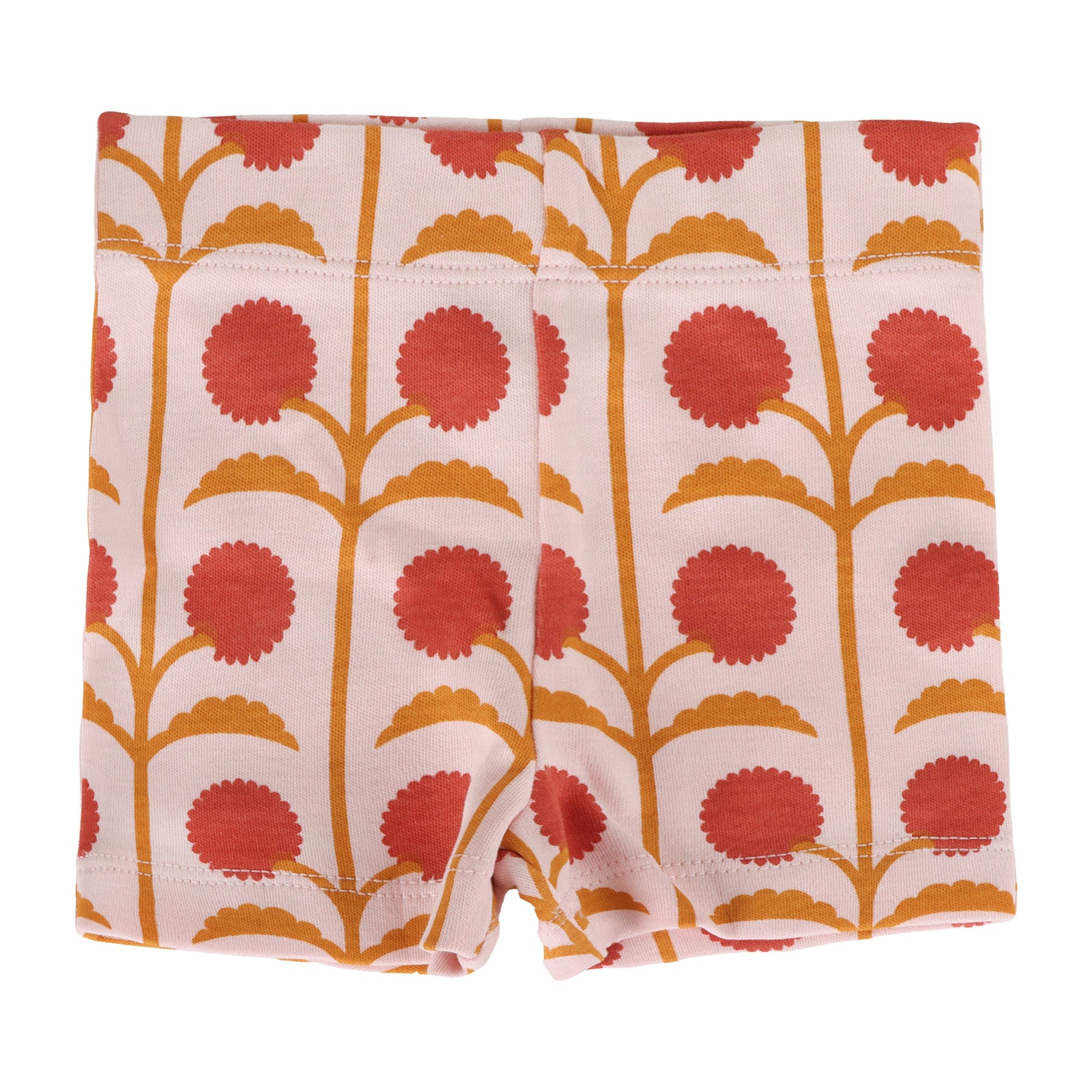 Features a top with self-tie spaghetti straps and gathered tiers paired with matching bike shorts.