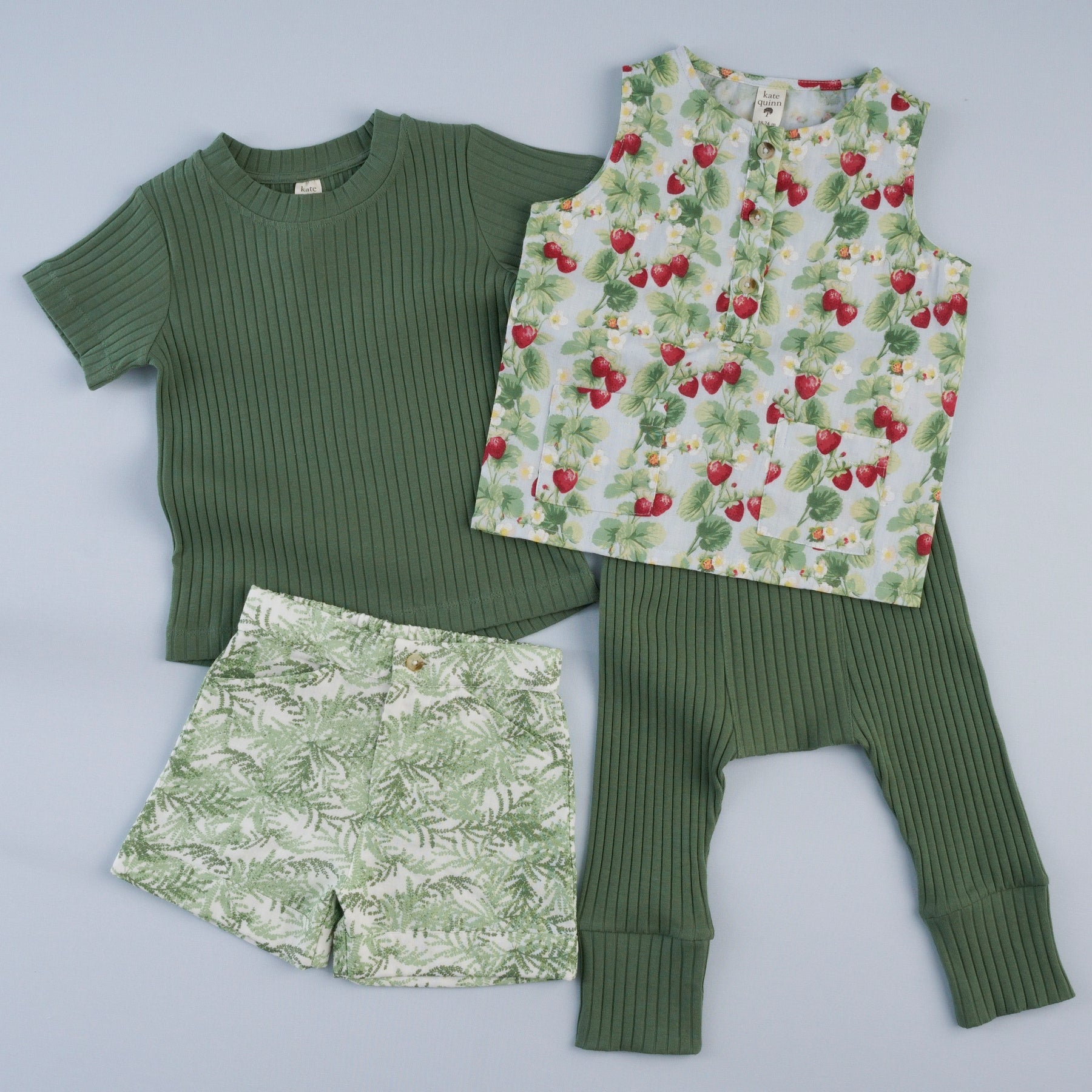 to whoever packed my box, i hope you have the best day. beautiful!! the strawberries makes my granny soul so happy & with the cutest biker shorts. the poppy dress is precious & so vibrant! the fern is a new style to us but I’m so excited to see it on my little one!!! love it!! thank you🥹â¤ï¸