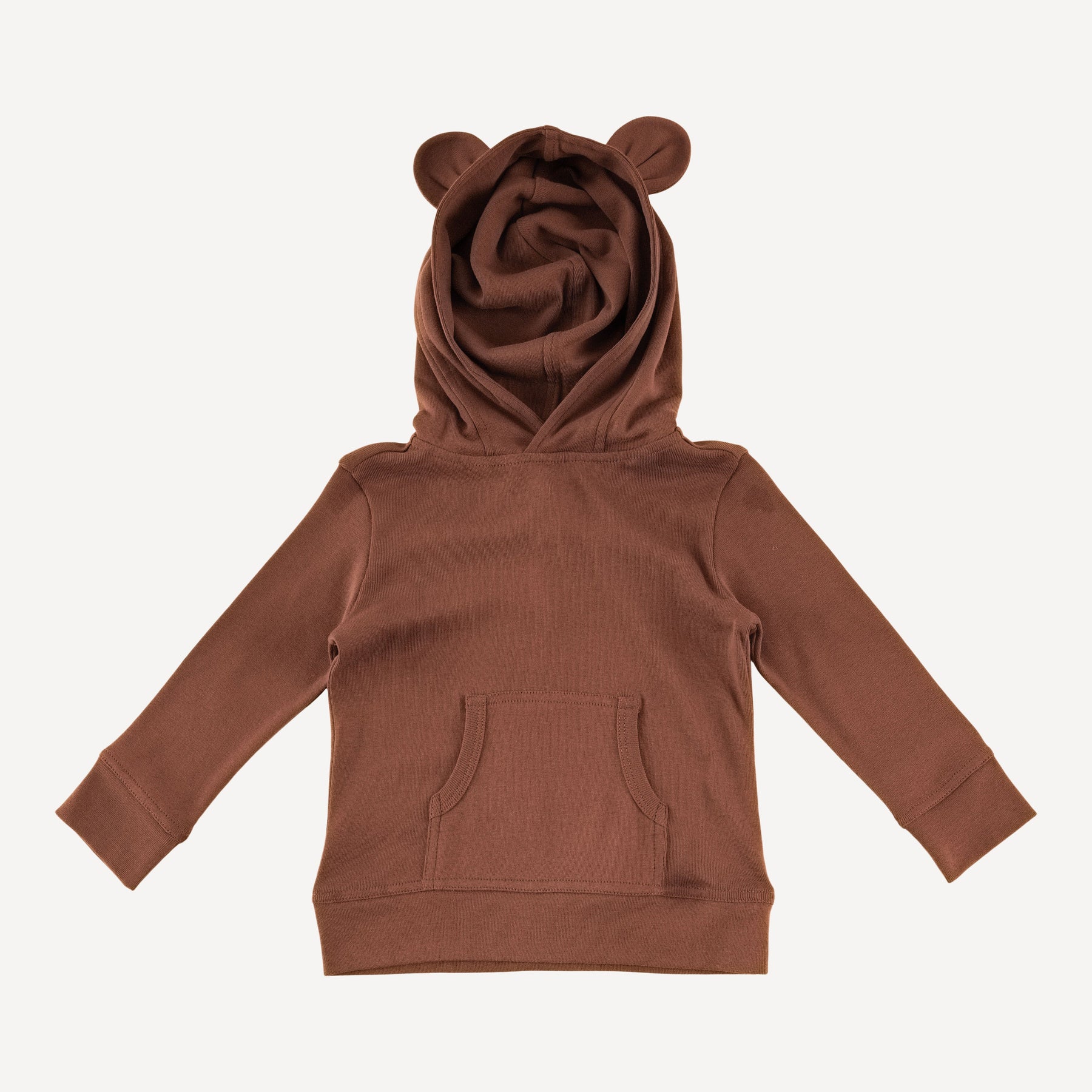 Features a relaxed fit top with a lined hood, bear ears, and front kanga pocket paired with matching relaxed fit joggers with elastic waistband.